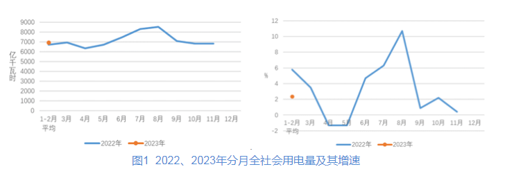 1-2月,全国全社会用电量13834亿千瓦时,同比增长2.3%。