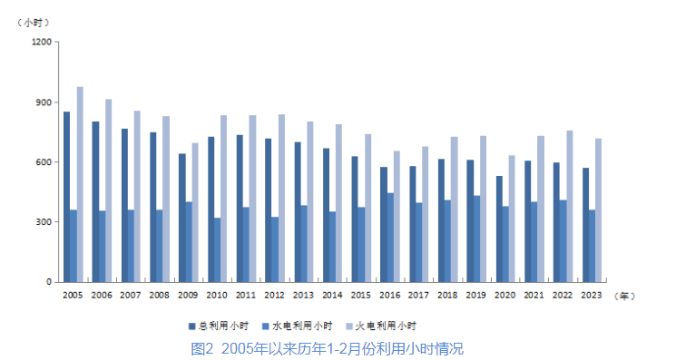 1-2月份,全国发电设备累计平均利用小时569小时,比上年同期减少28小时。
